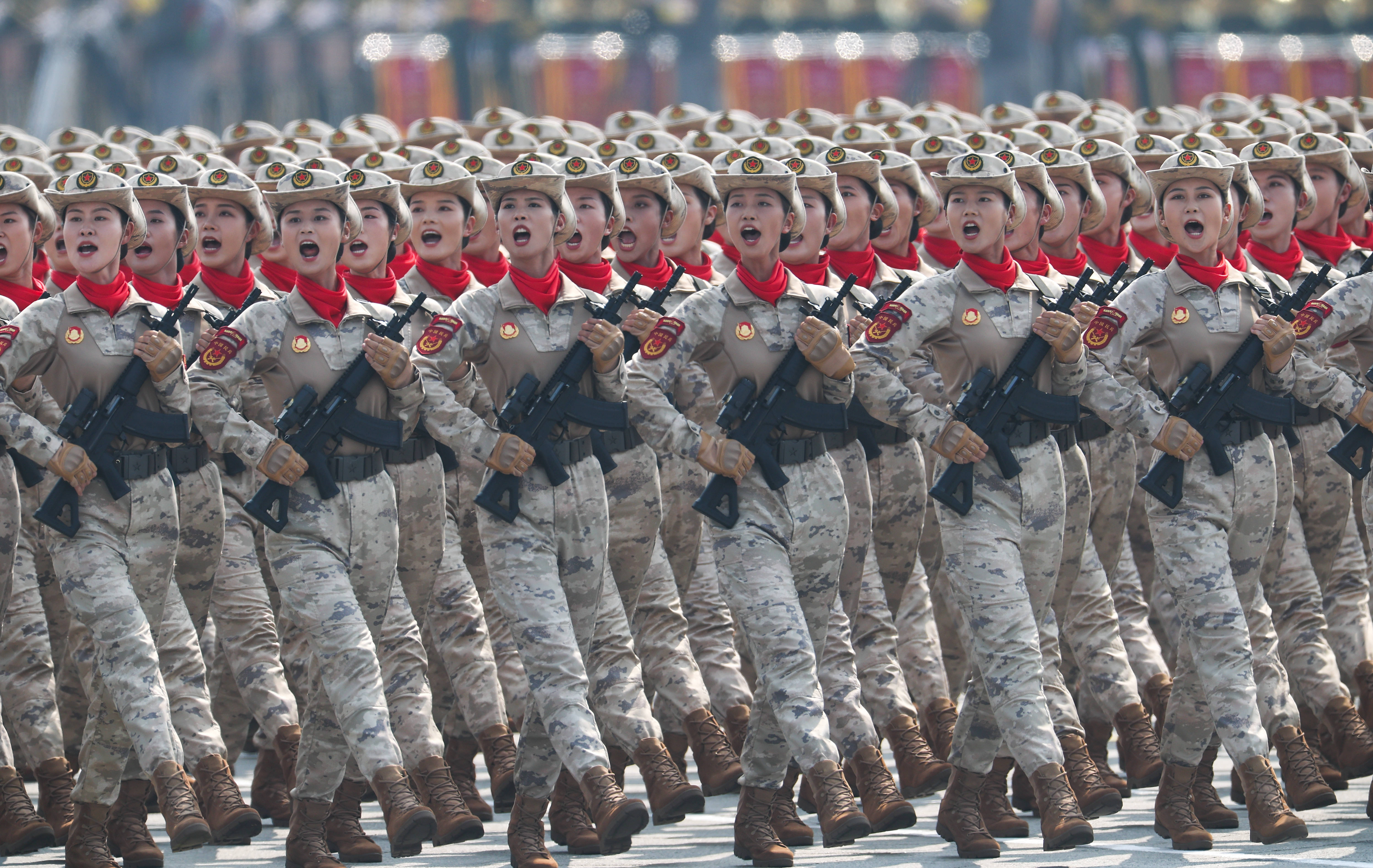 民兵方队全部由女民兵组成。这是民兵首次亮相以纪念抗战胜利为主题的阅兵活动。