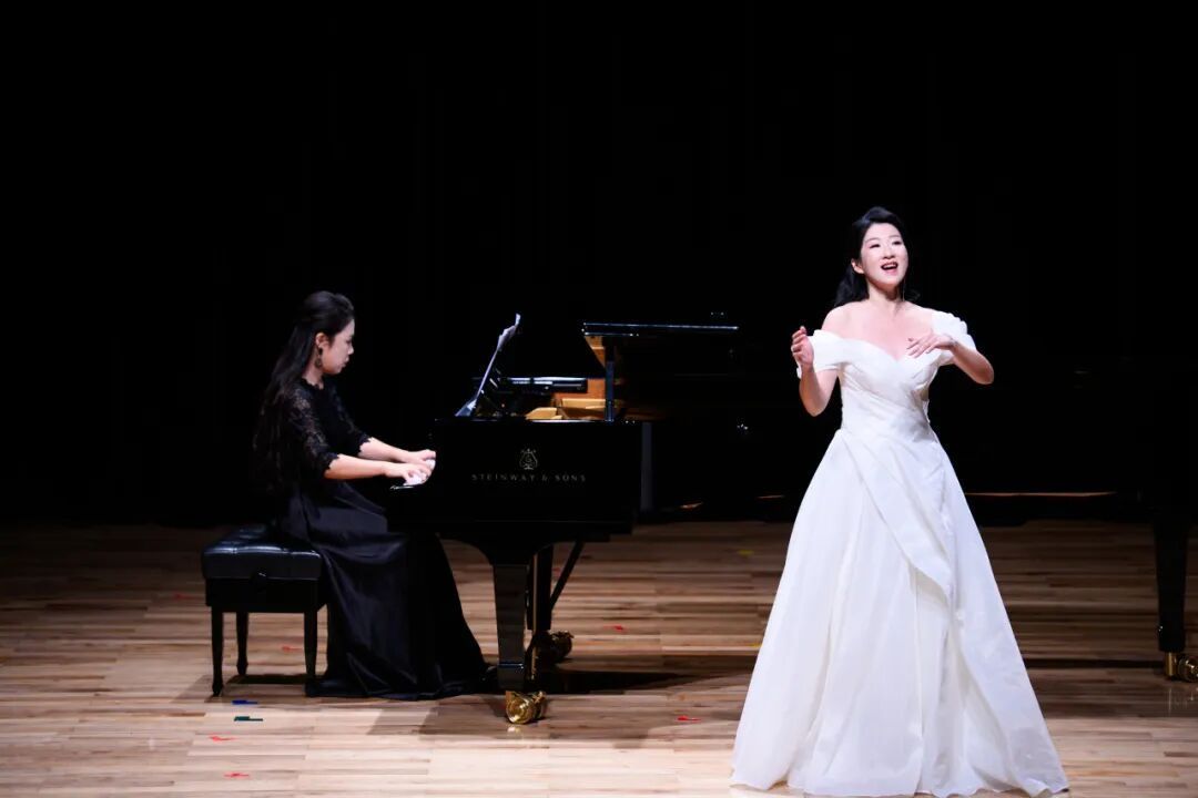 音乐会的下半场“艺路同行,共谱华章”更是将气氛推向高潮。民乐合奏《花好月圆》以扬琴、古筝等传统乐器焕发千年民乐新声。经典花腔咏叹调《木偶之歌》的旋律响起,瞬间抓住了所有听众的耳朵,演唱者用其珠玉般的音色和精湛绝伦的控制力,完美复刻了人偶机械式的优雅与灵动。